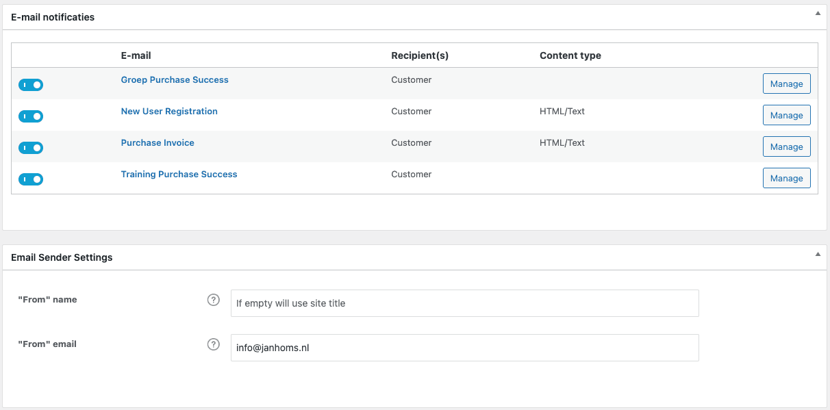 Je kunt het "From name" en "From email" aanpassen voor alle LearnDash-e-mails. Als je deze velden leeg laat, worden de standaard gegevens van je website gebruikt.