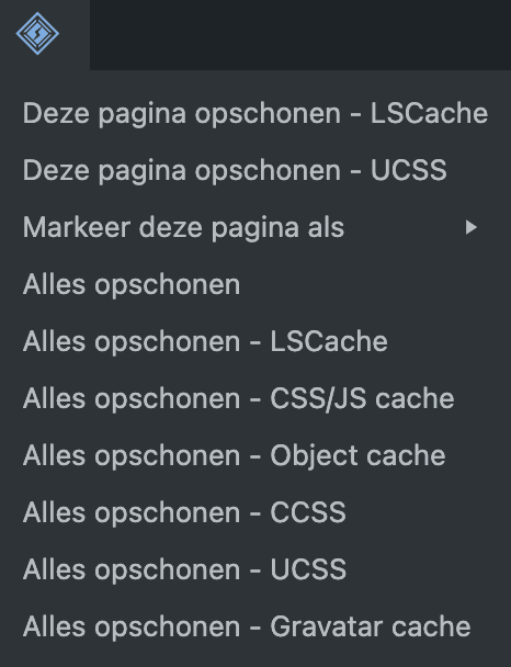- Er verschijnt een dropdown-menu met verschillende cache-opties.